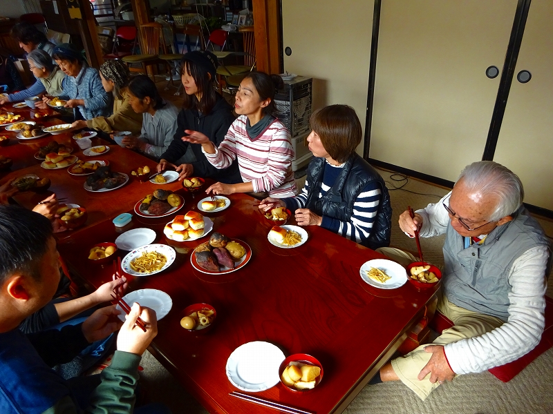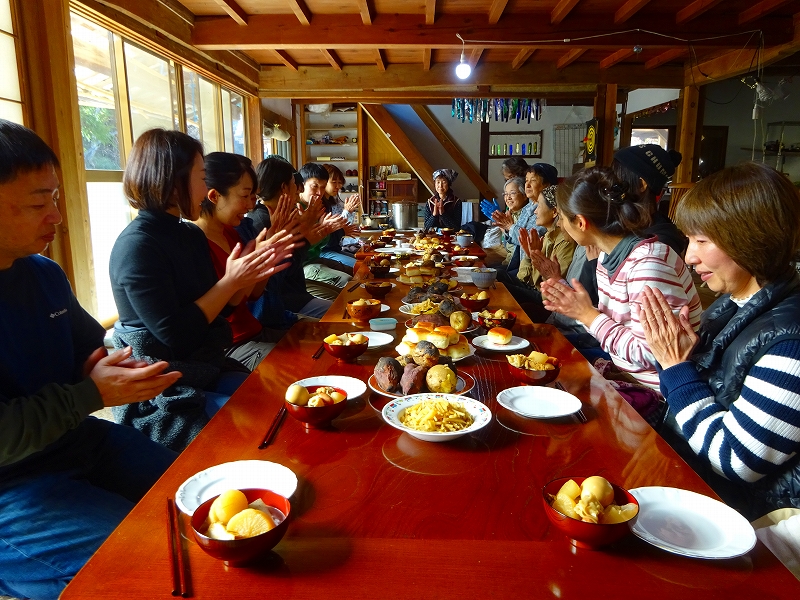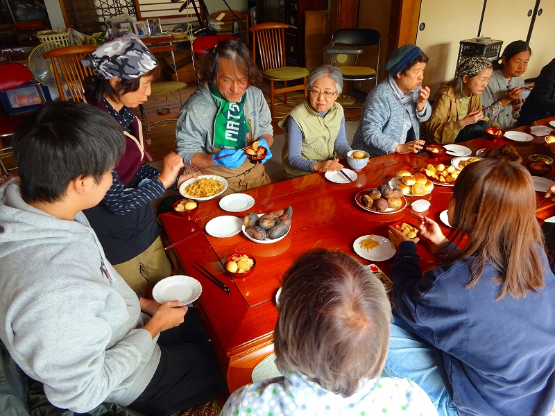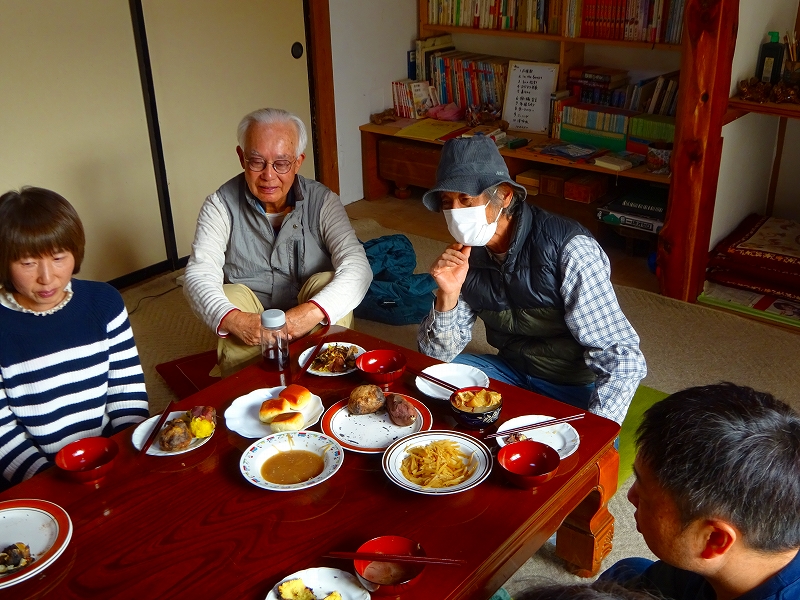 大根の皮のキンピラや差し入れのパン、漬け物もテーブルに並び、おなかいっぱいいただきました👏